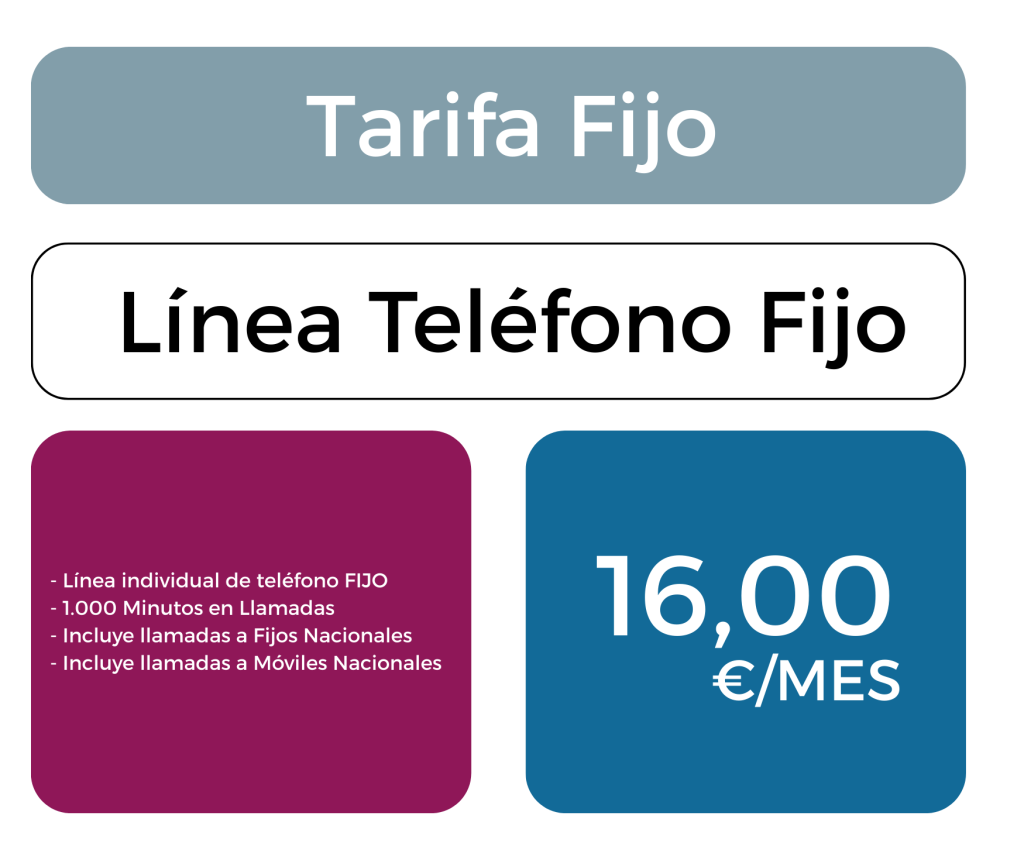 - Incluye: 1000 min al mes para gastar entre llamadas a fijos nacionales y/o móviles nacionales.